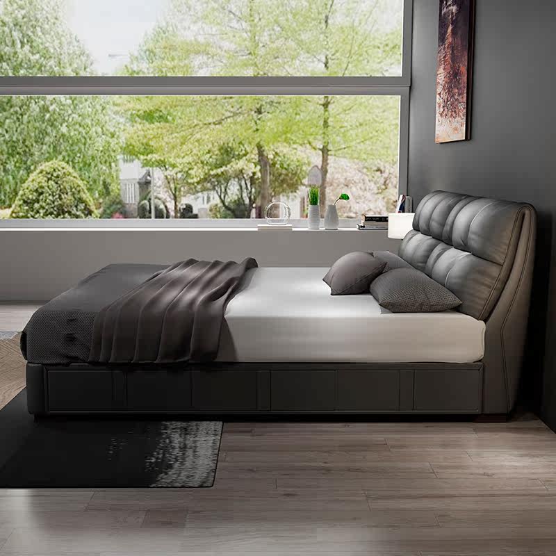 Nordic leather bed Double light luxury bed Net red bed Modern simple soft bed Master bedroom storage two meters wedding bed small apartment