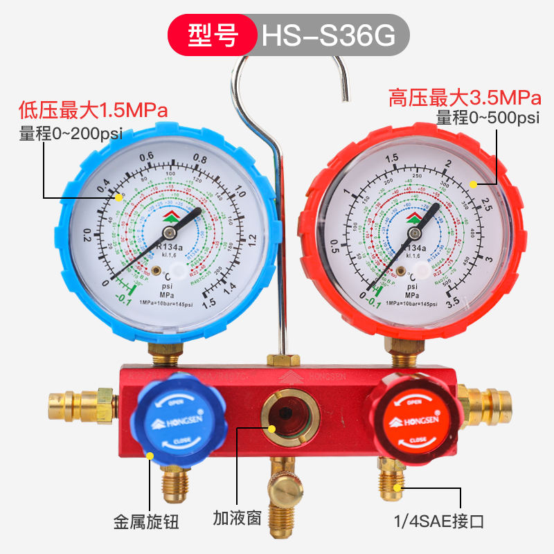 HS - S36G Automotive Air Conditioning Fluorine Fluorine Snow - species Surface refrigeration pressure gauge fluorine tool