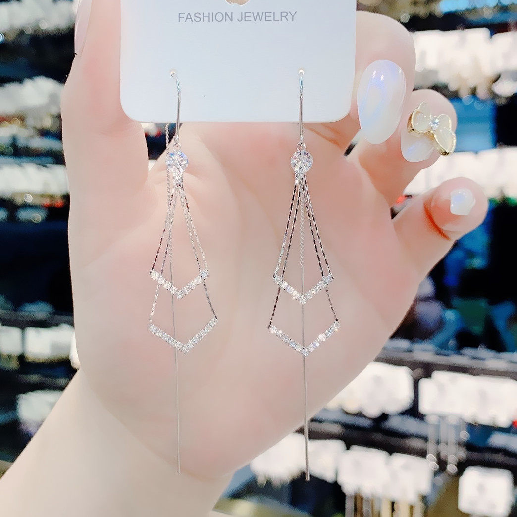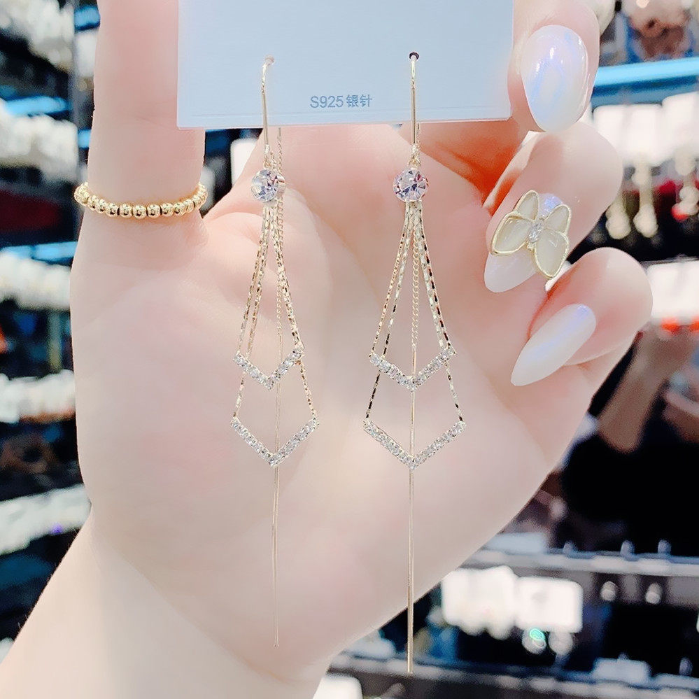 Advanced Senses Geometric Flow Su Earrings Long Version Inlaid Drilling Temperament Mesh Red 2022 New Silver Needle Ear accessories Slim Fit