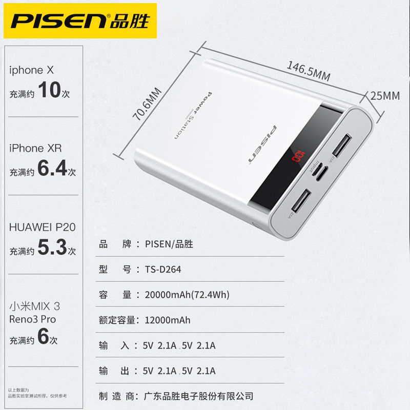 New electric library 2W★small white★white★double mouth input single-mouth output D131 22 5W flash charge★20000 mAh★3 output 3 input★screen display★elegant white 20