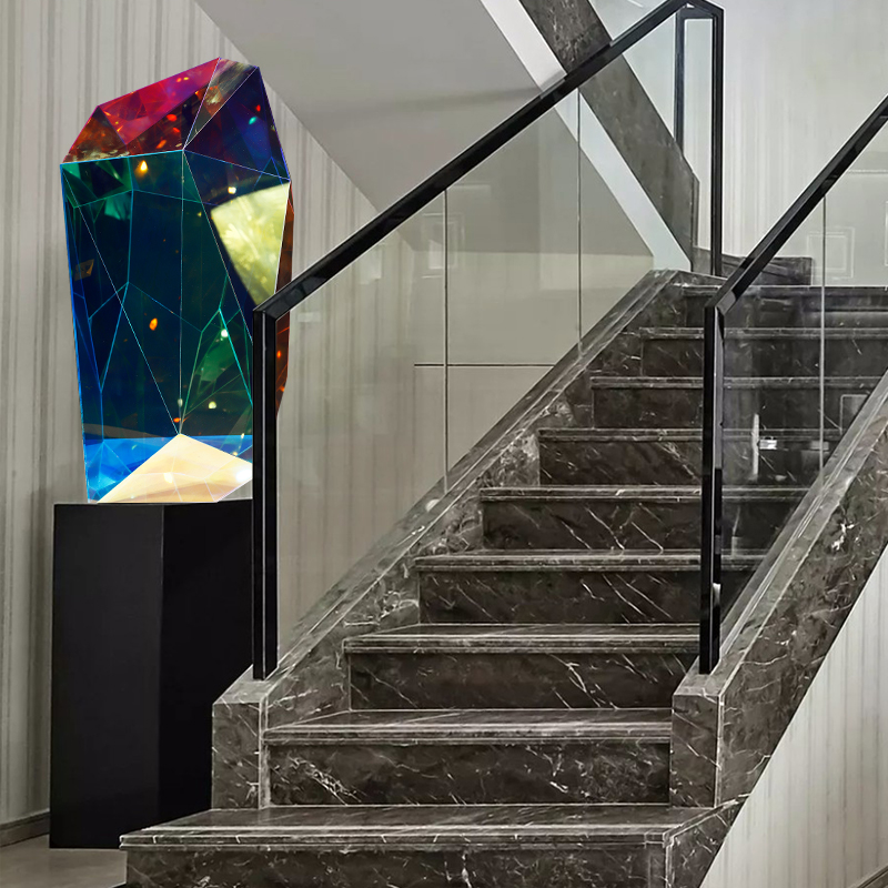 Colorful acrylic sculpture creative geometric multicolor polyhedron decoration hotel lobby sample house display center decoration decoration