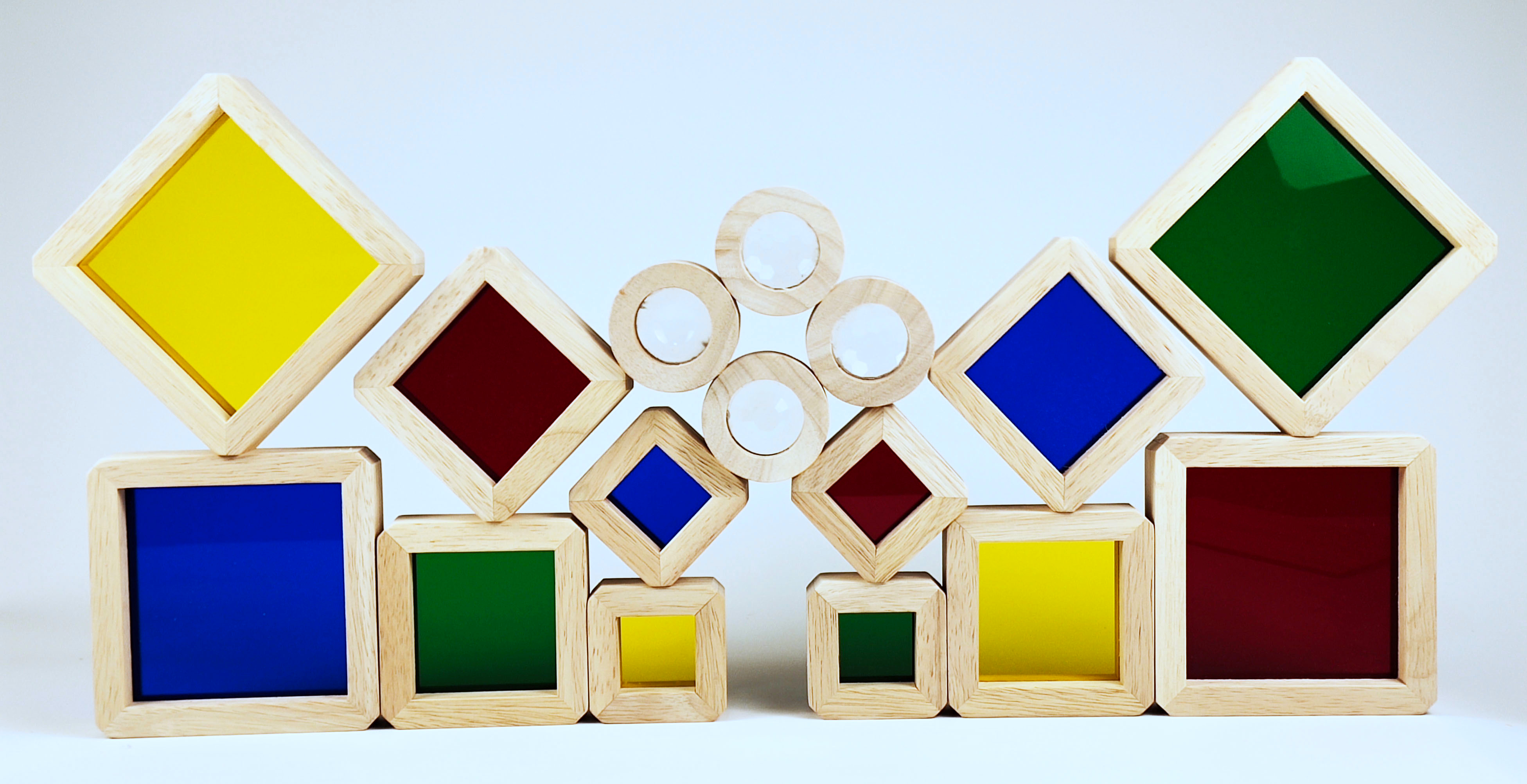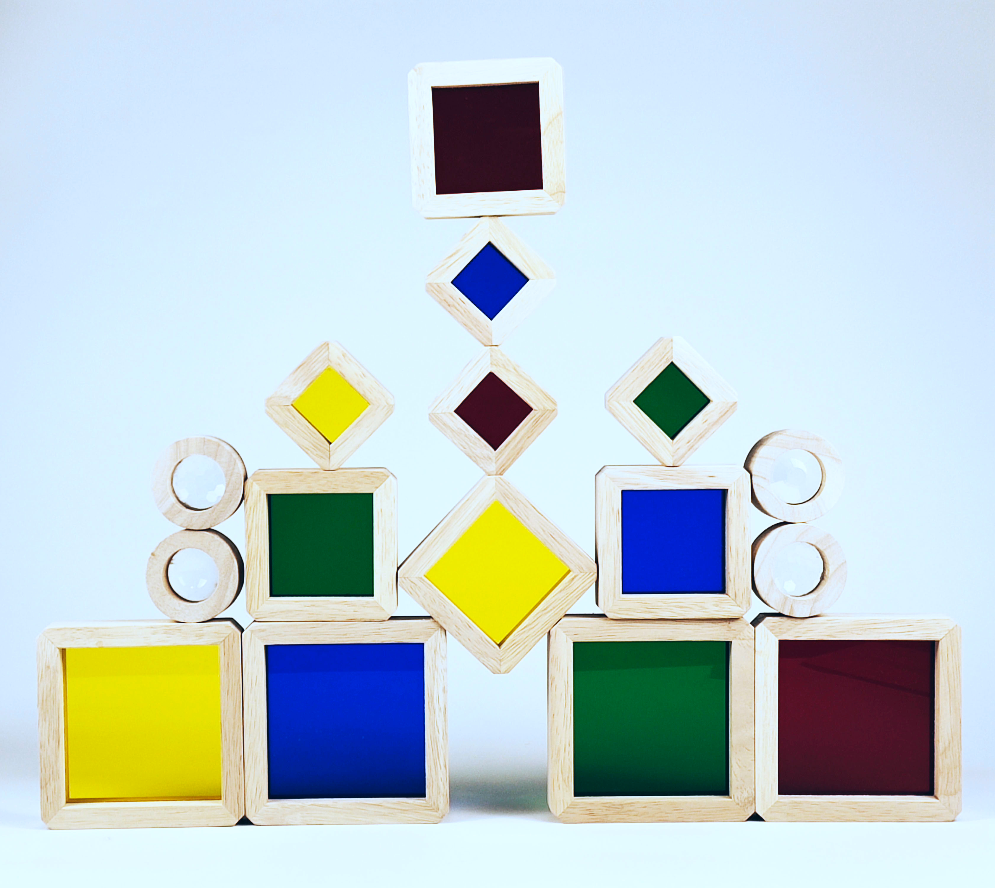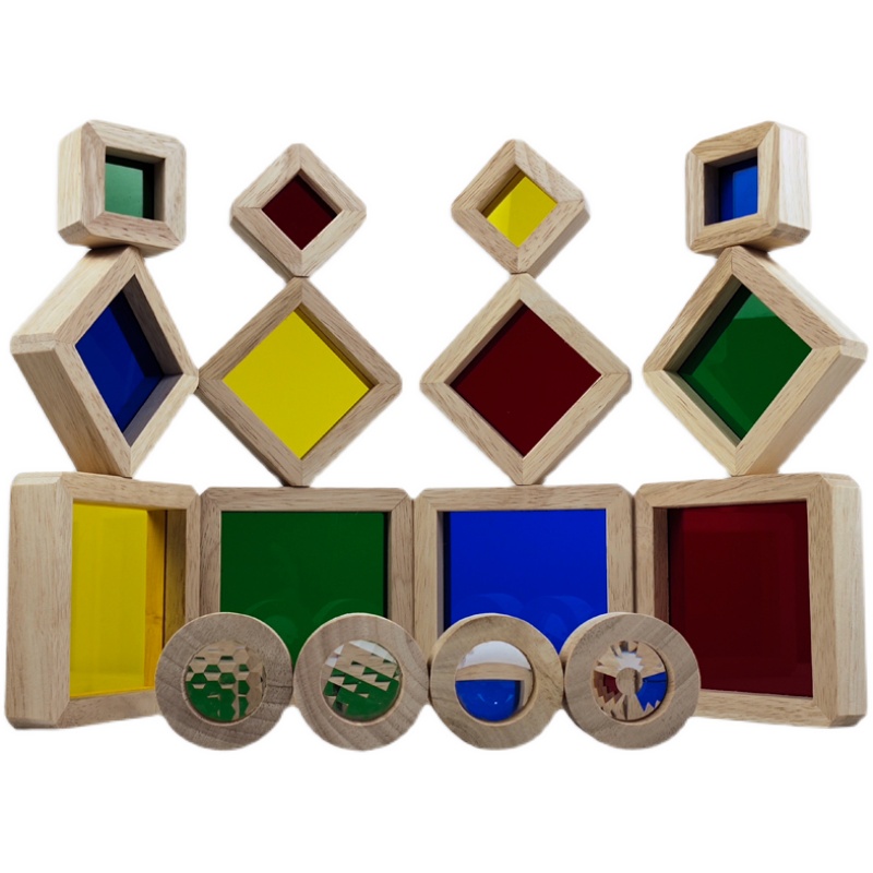 Large particle wooden creative acrylic sensory magic light and shadow rainbow building blocks children's educational toys Montessori early education