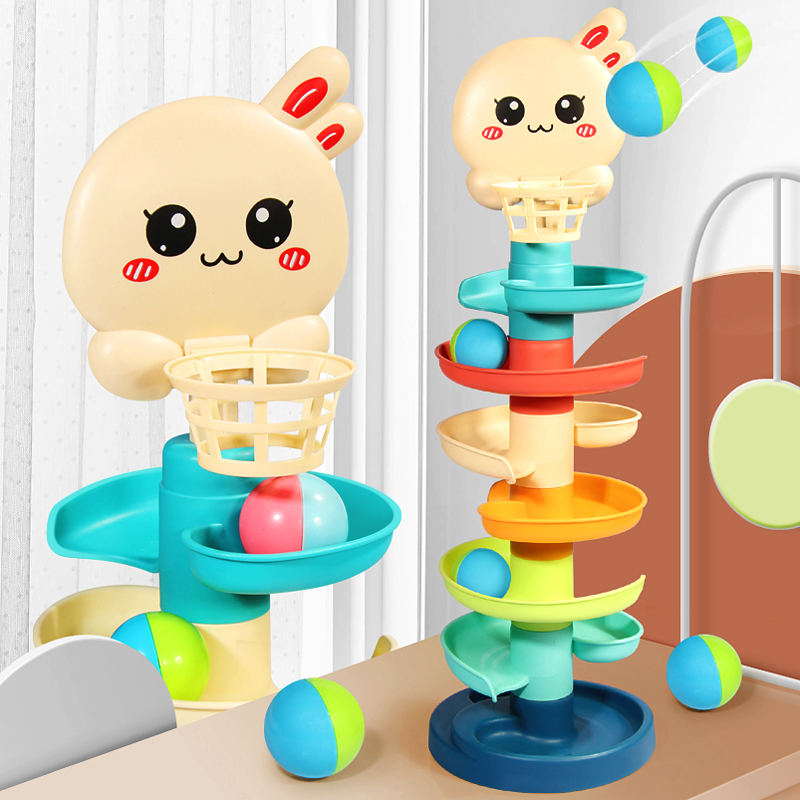 Infant and young children shooting track tower turn around music stacking music early education educational toys 6 months baby rolling ball 1-3 years old