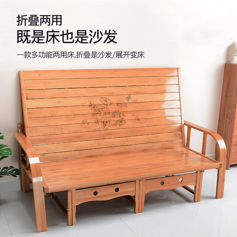 Folding bed double single cold bed siesta lunch break Home multifunctional bamboo hard board bed dual use 1.8 meters bamboo bed