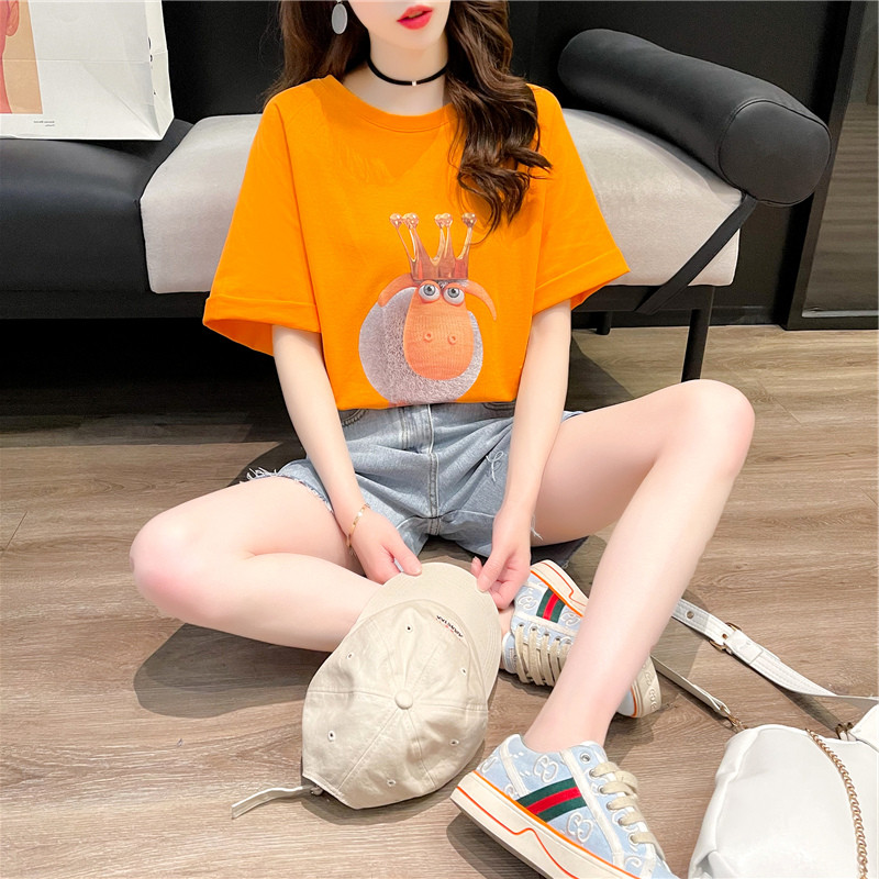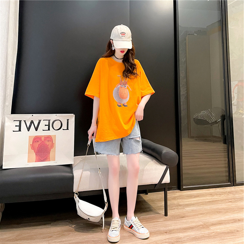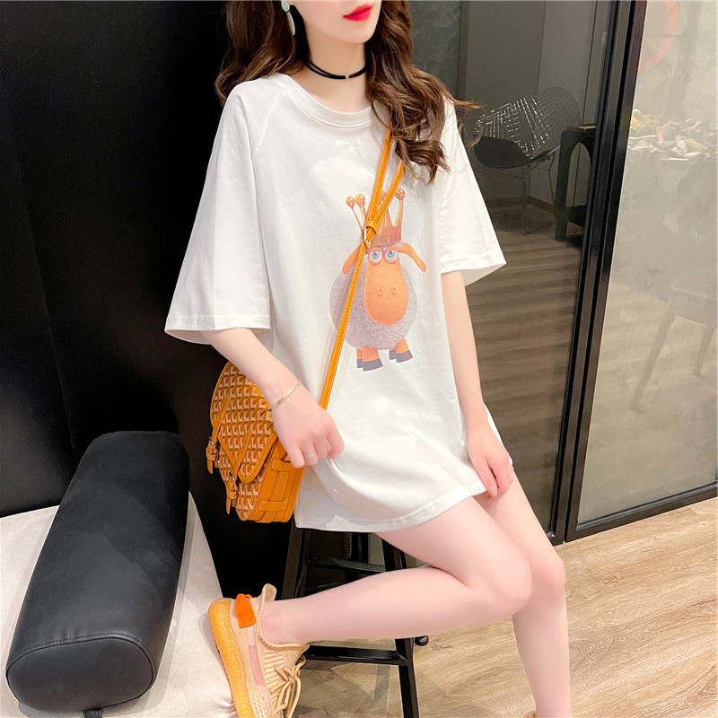 Chao brand summer long version short sleeve T-shirt women 2021 new T-shirt Joker half sleeve design feeling niche jacket