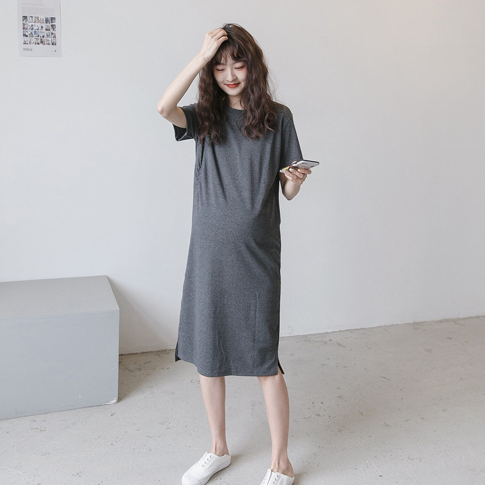 Pregnant women's T-shirt dress summer cotton fashion short sleeve easy cotton tops appears thin medium and long version leisure