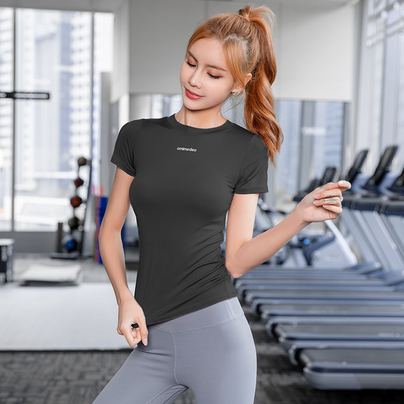 New quick-drying sports T-shirt women's stretch breathable letters gym short-sleeved professional running clothes yoga clothes tops