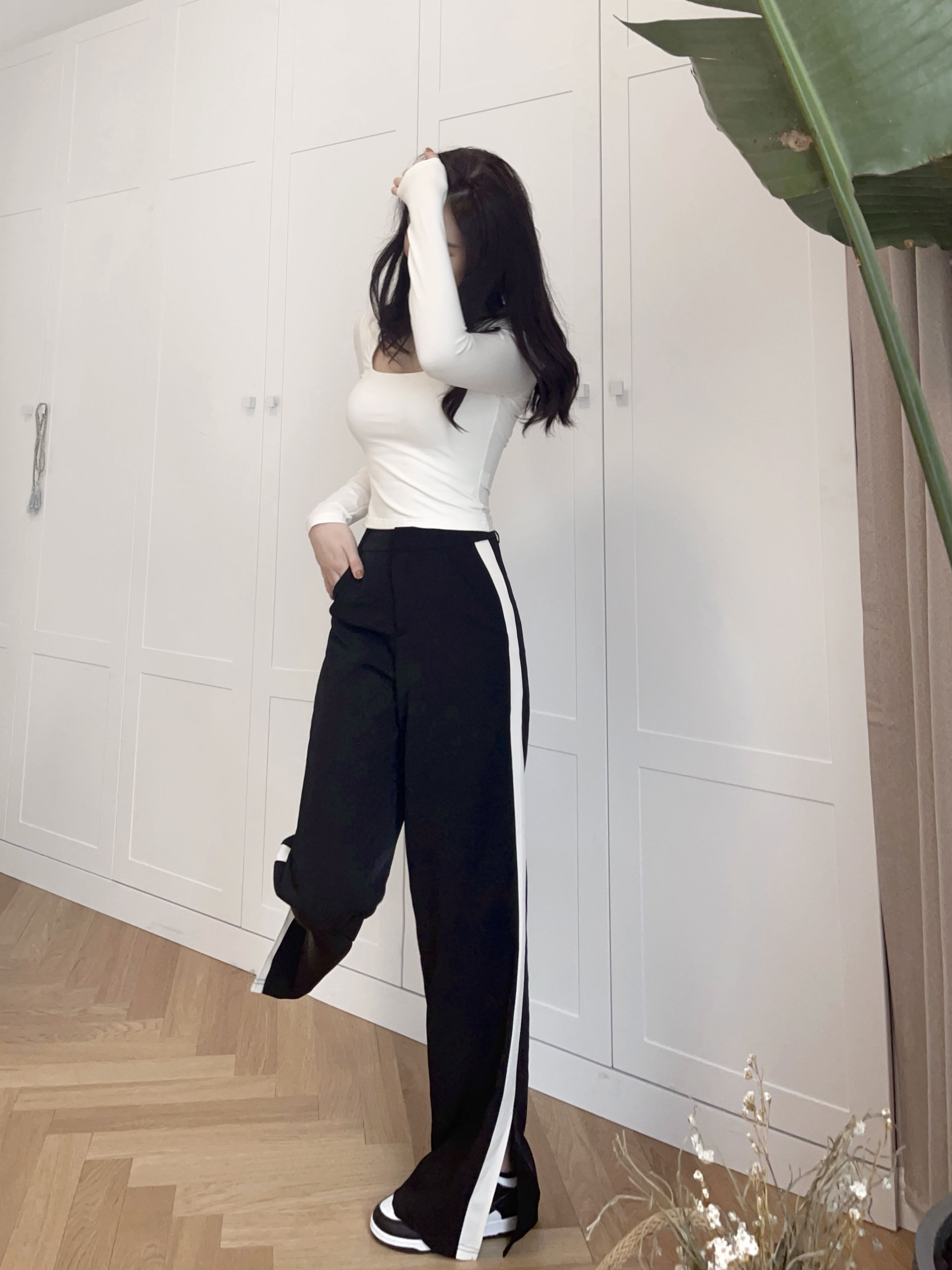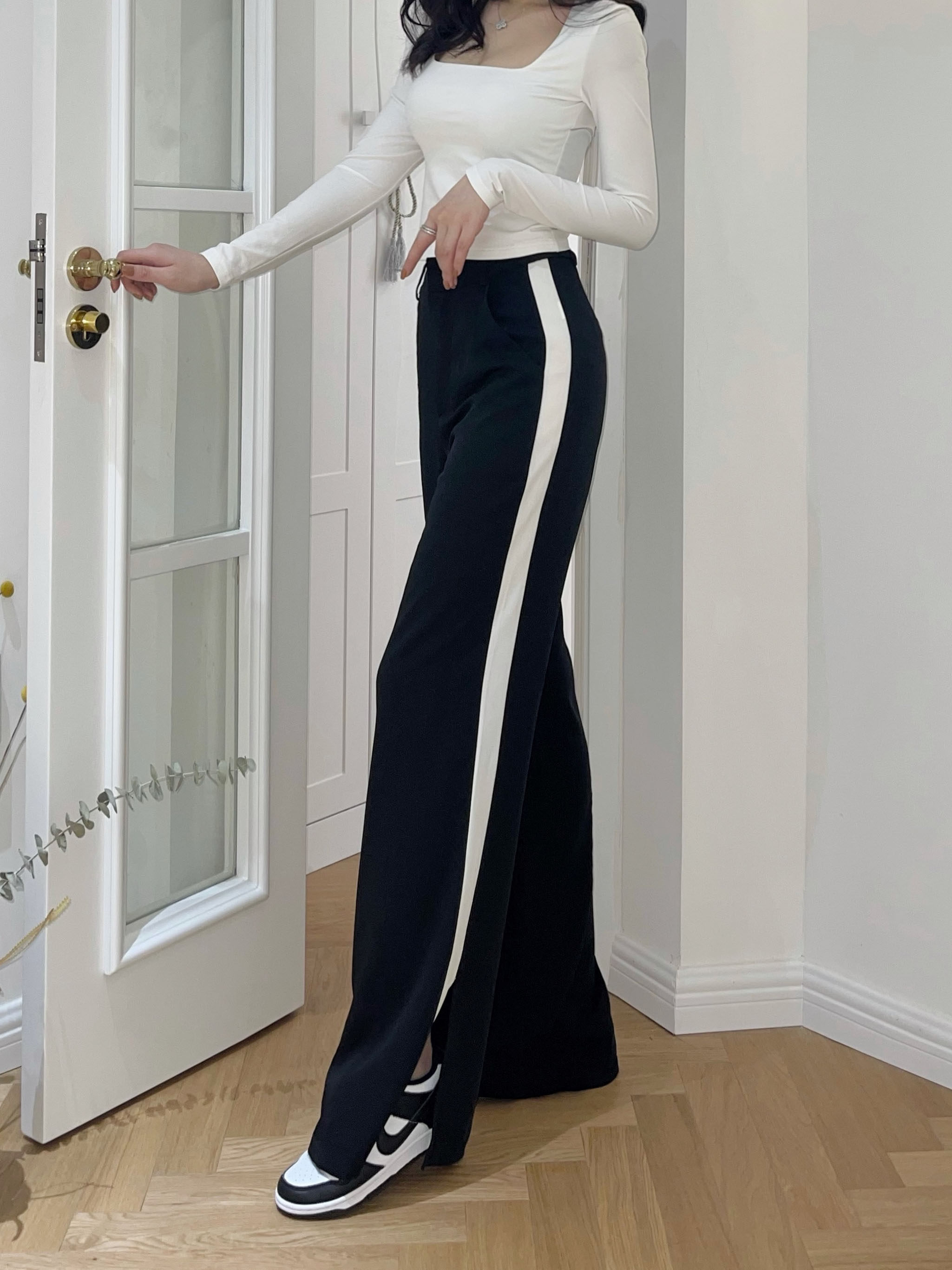 Limited time 30% off nicky black sports casual pants women's thin section ins trendy loose straight high waist 2022 all-match