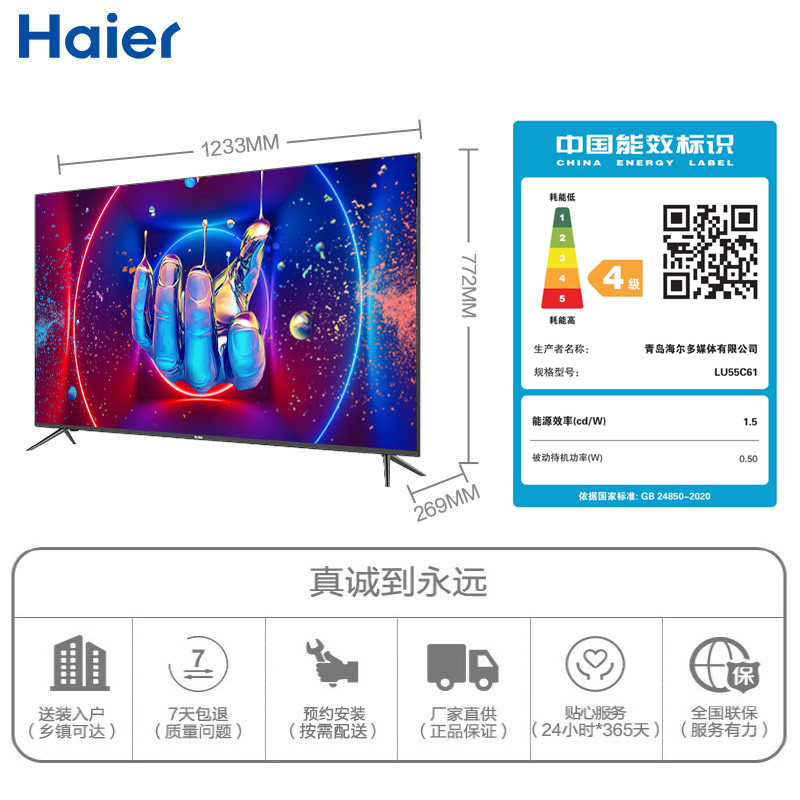 Haier LU55C61 High Performance Full Screen 55-inch 4K Ultra HD Smart Voice Internet Liquid Crystal TV