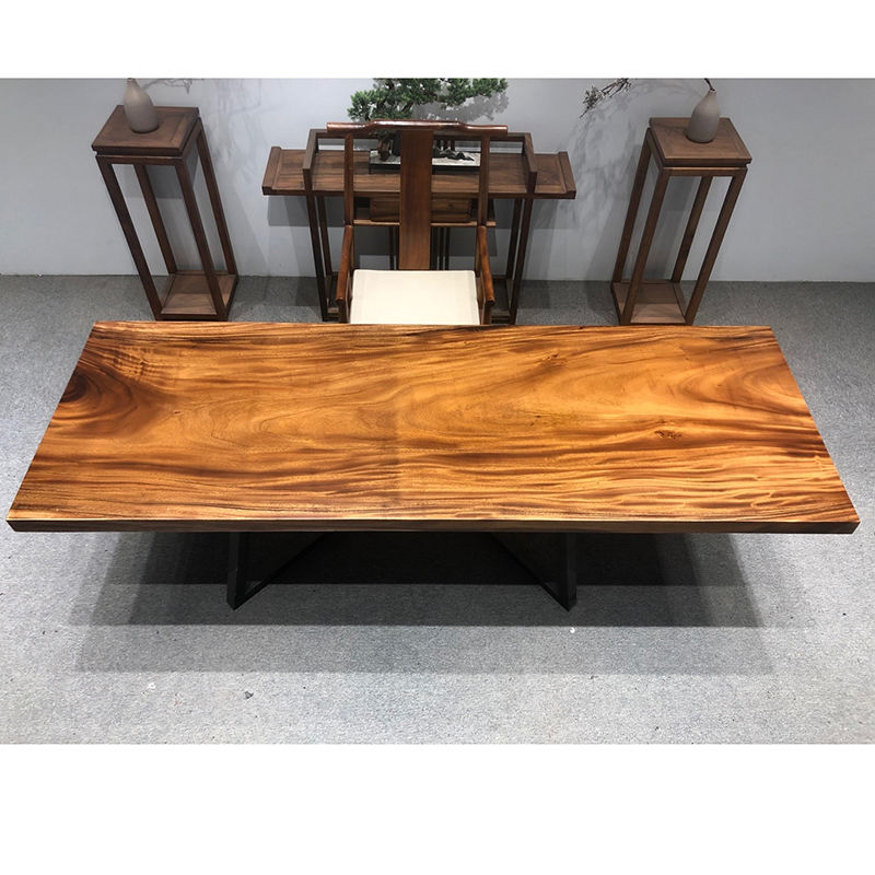 Walnut solid wood large board tea table and chair combination Log dining table Solid wood whole book tea table office 240-82-6 5