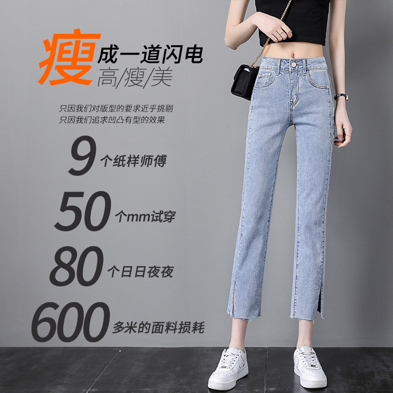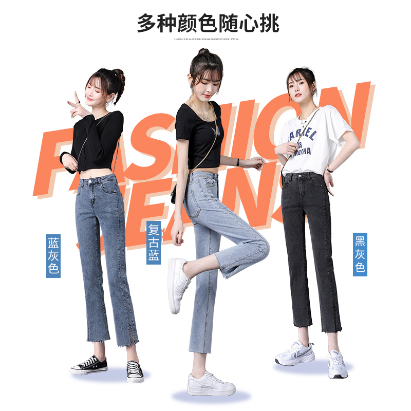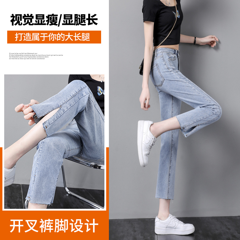 (clear cabin) open fork straight cylinder jeans female summer thin section 2022 new small sub 90% smoke pipe pants children