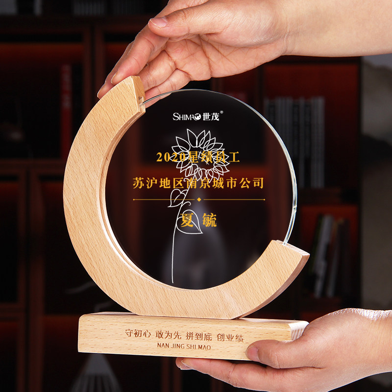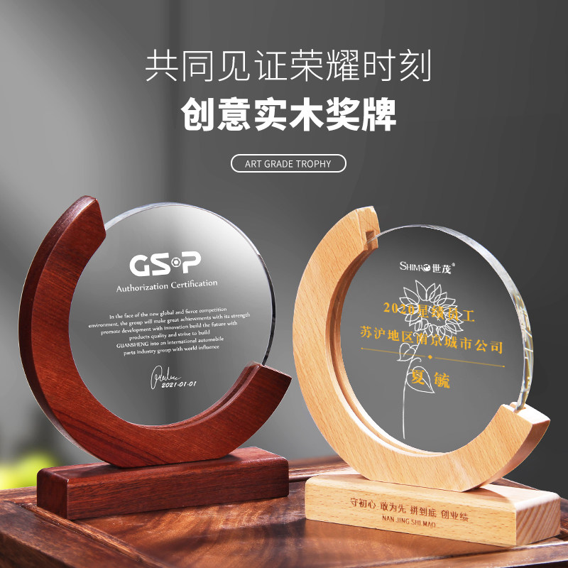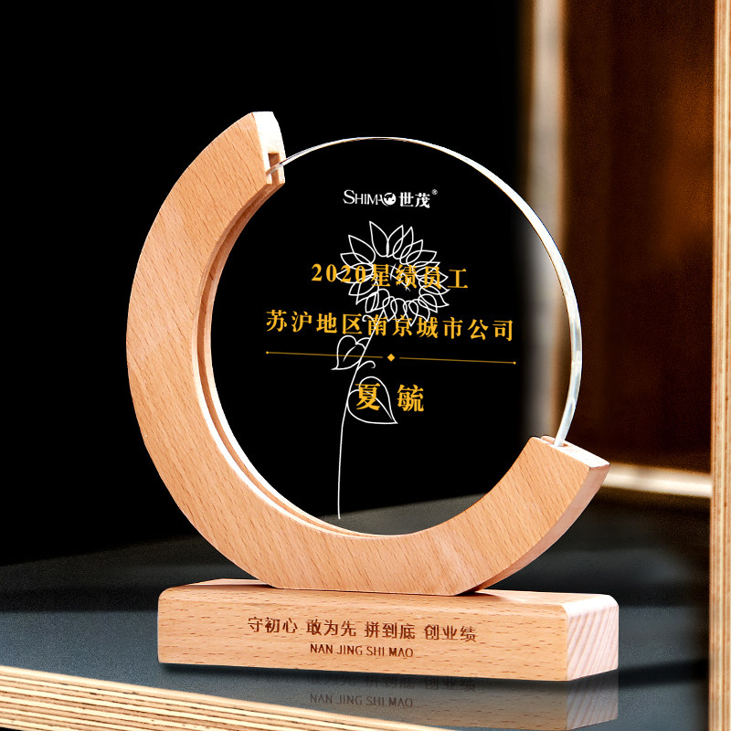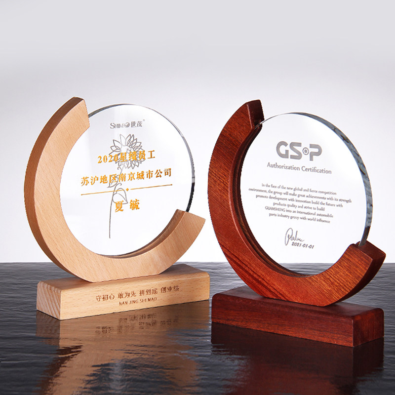 Honorary Award Cup Brief Beech Wood Creative Wooden Solid Wood Trophy Custom Free Lettering Enterprise Company Employees Awards