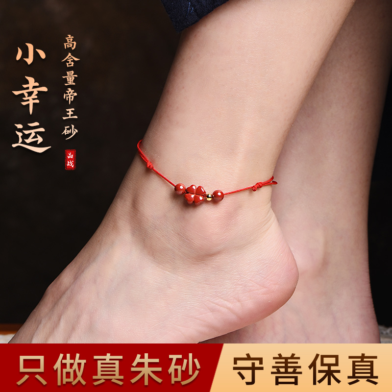 Crystal Warfare Zhu Sands Flagship Store Fidelity Purple Gold Sand Zhu Sandstone Foot Chain Good Luck Pearl Red Rope Footed Woman Fu Lu Shouxi-Taobao