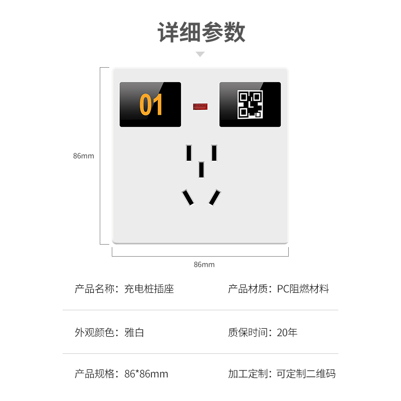 Electric vehicle charging station community charging pile 86 type special rainproof and waterproof charging socket concealed five holes 10 packs