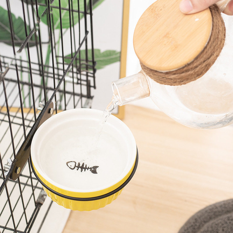 Ceramic cat bowl cat food bowl anti-overturning hanging kitten special cat water bowl cat bowl fixed dog bowl pet bowl