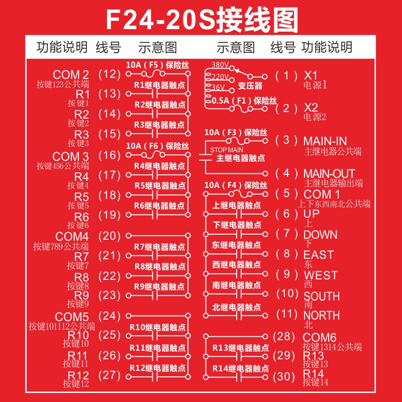 Factory Default Power Supply Voltage 380V (1 Fat 1 collection) Factory Default Power Supply Voltage 380V (2 Fat 1 collections) Single-fit F24-20S transmitter One single fit F24-20S pick up