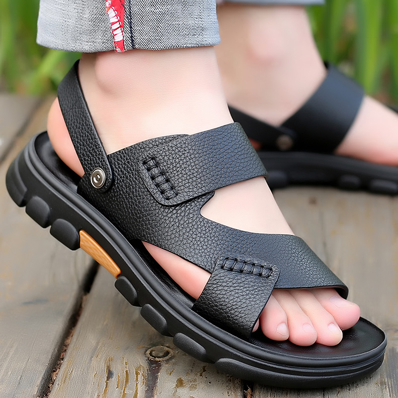 Men's sandals 2022 summer new beach shoes middle-aged casual men's sandals dual-use leather soft-soled sandals men's models