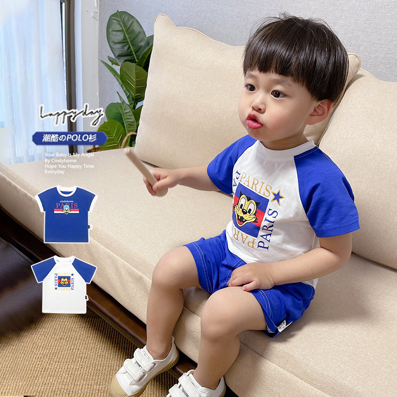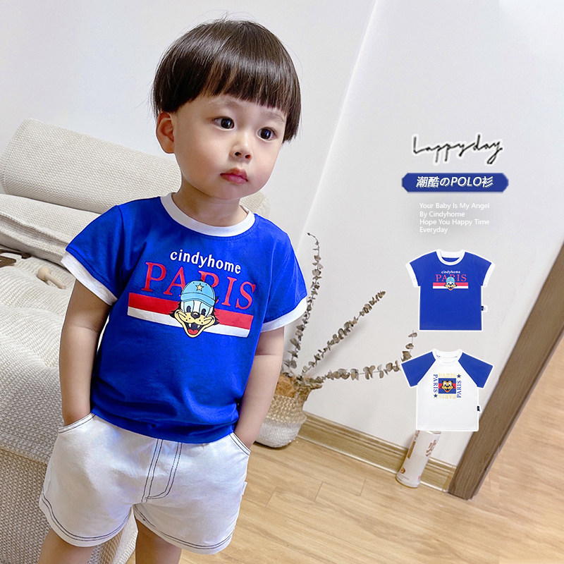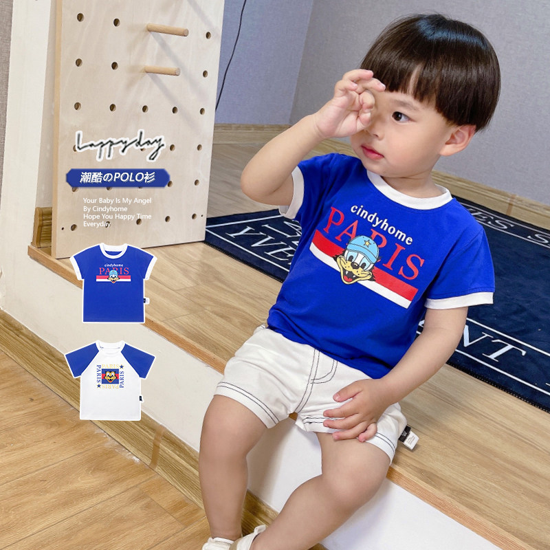 Summer pure cotton in children short sleeves T-shirt cartoon foreign men and women baby clothes round collar thin children summer load