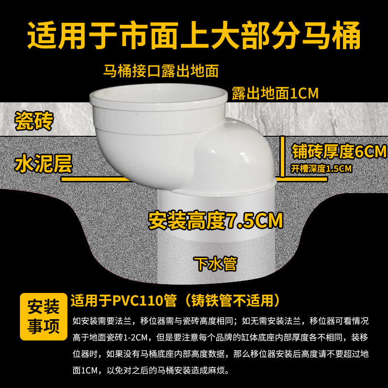 PVC toilet displacement without digging ground transfer pit 110 drainage pipe drainage pipe flat toilet dedicated