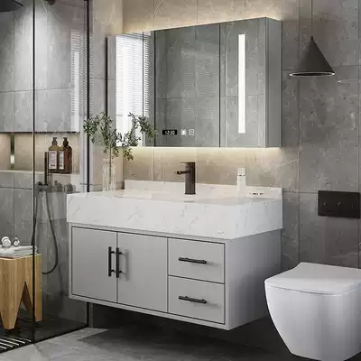 Bathroom cabinet rock plate one-piece basin cabinet combination Modern makeup room washstand Marble hand washing face pool bathroom set