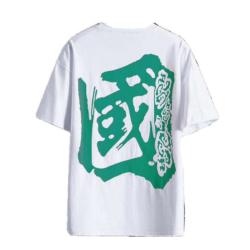 Chinese Wind Text Pattern Printed Short Sleeve T-shirt Male Teen Summer Loose Tide Card Pure Cotton Half Sleeve T-shirt