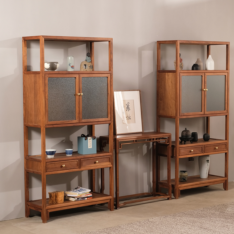 Kyoyue-New Chinese shelf Double cabinet door minimalist bookcase black walnut wood solid wood glass bookcase imitation ancient furnishings-Taobao