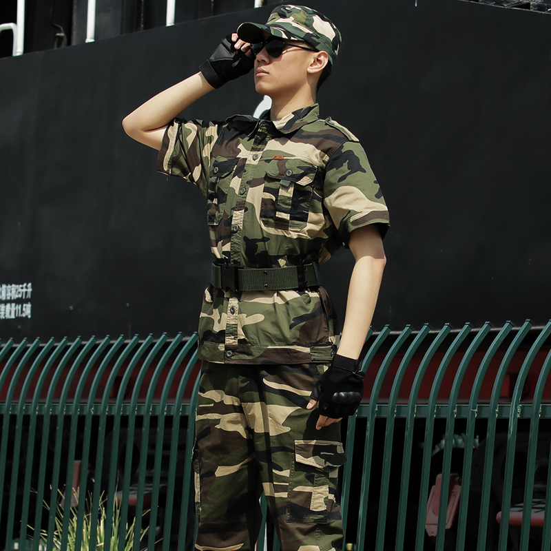 Thin-style camouflak suit for men and women summer loaded short sleeves camouflak workwear multipocket abrasion-proof military camouflak pure cotton clothes