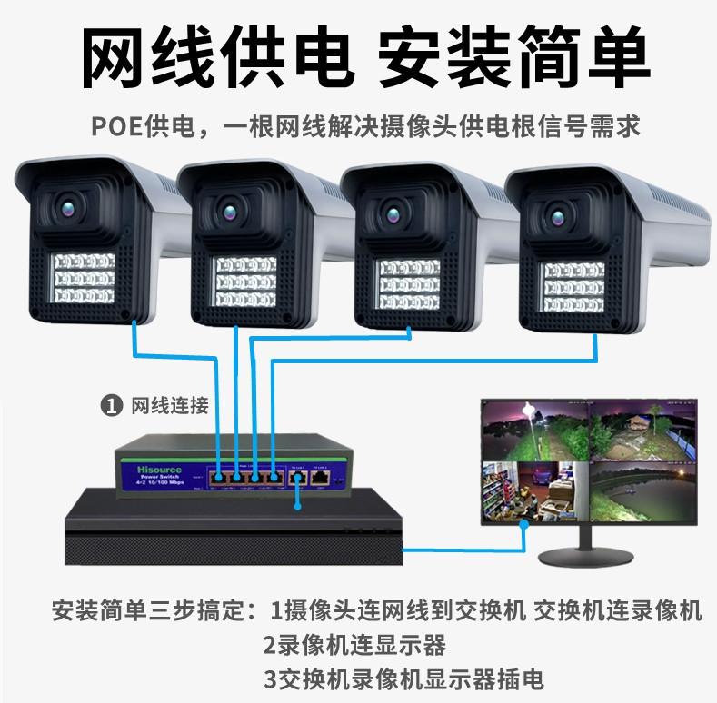 Monitor full set of equipment set home commercial supermarket outdoor HD poe camera machine network remote 4 way