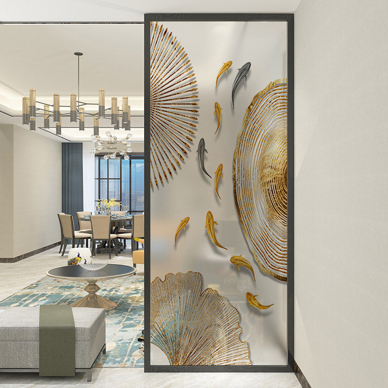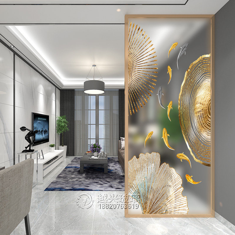 Art glass custom partition screen Living room entrance background wall decoration frosted translucent steel process nine fish figure