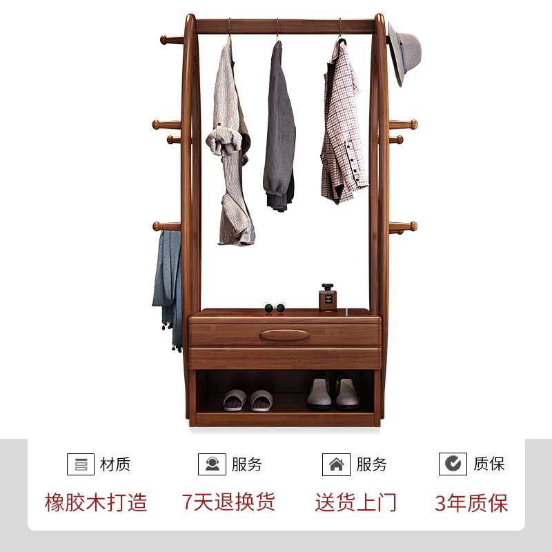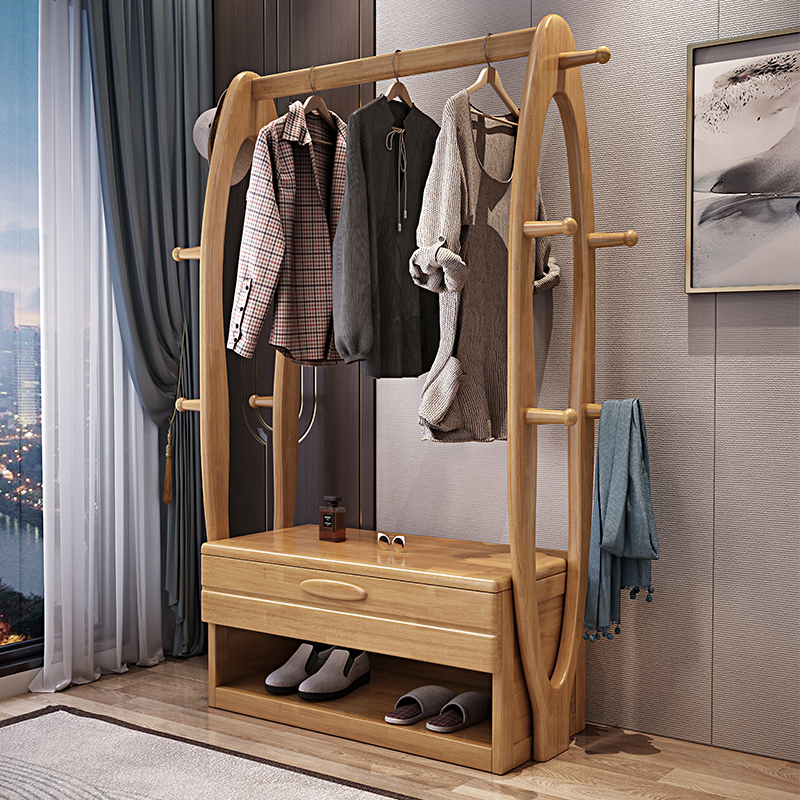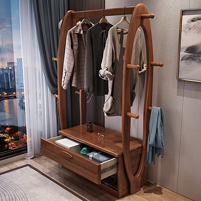 Solid wood coat rack floor hanger bedroom simple new Chinese style with drawer storage multifunctional clothes hanger