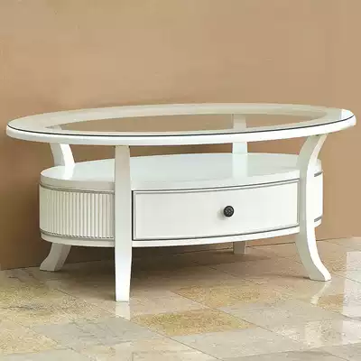 American light luxury solid wood coffee table modern minimalist small apartment two-story coffee table table round tempered glass desktop