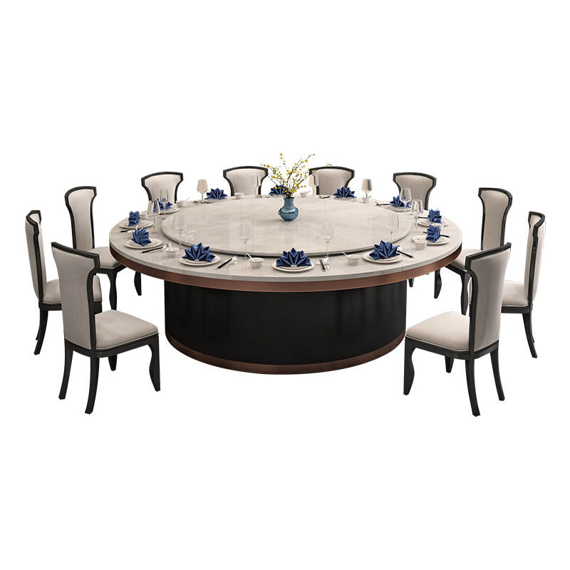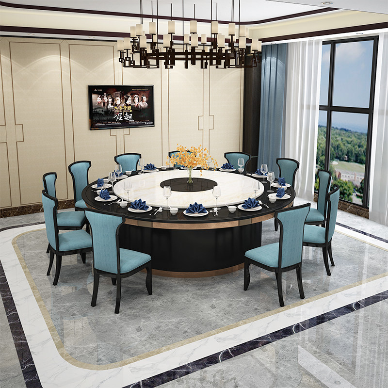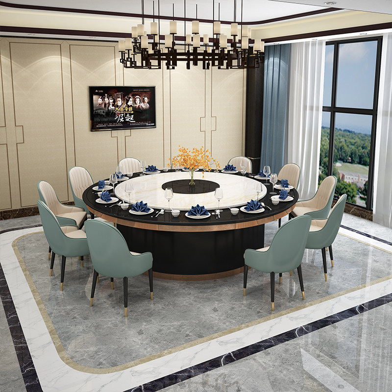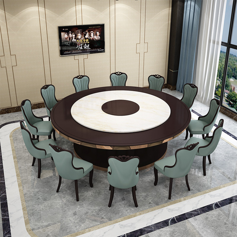 Hongying Hotel Electric Dining Table Big Round Table with marble turntable rotating table and chairs Composition 10 people 15 20 people 20