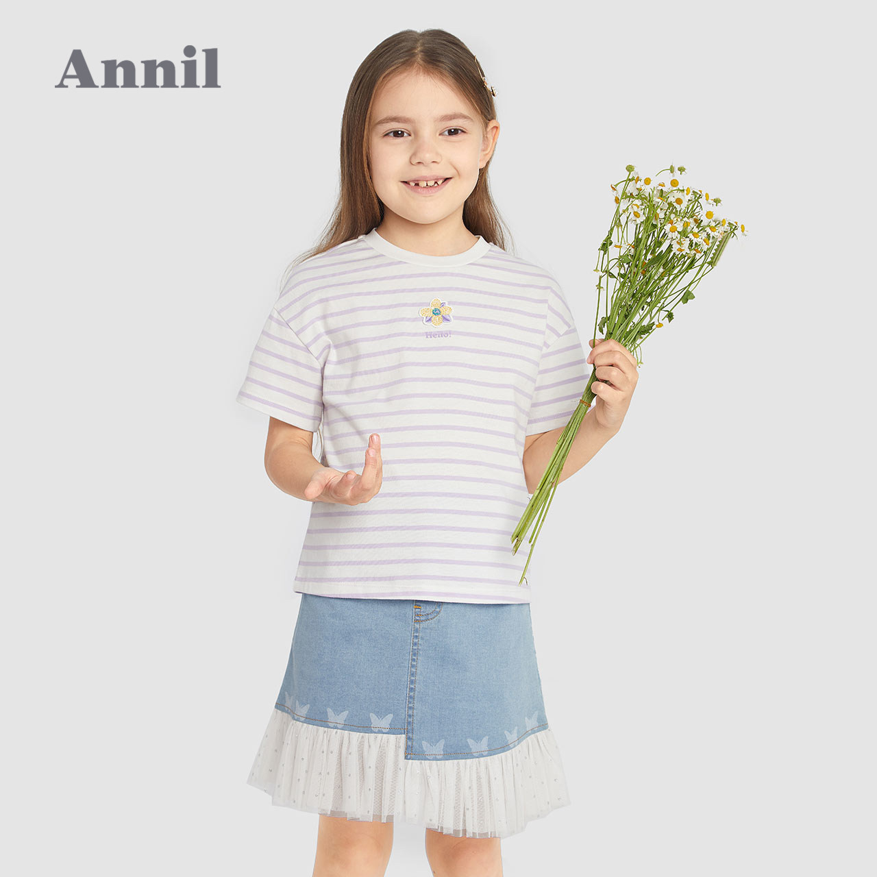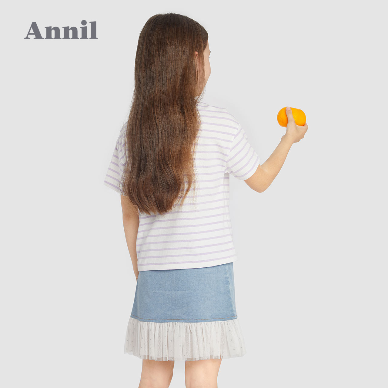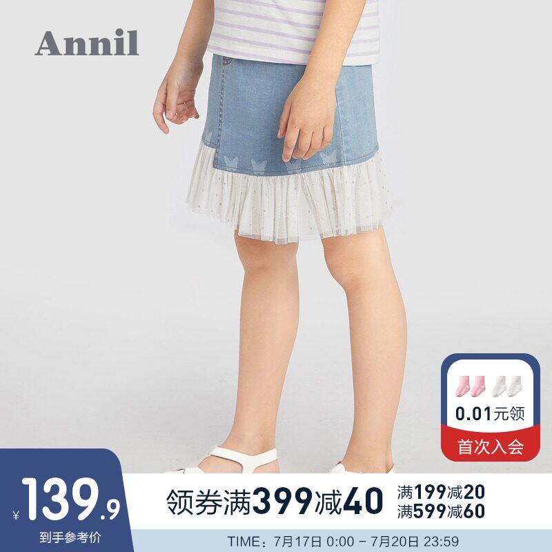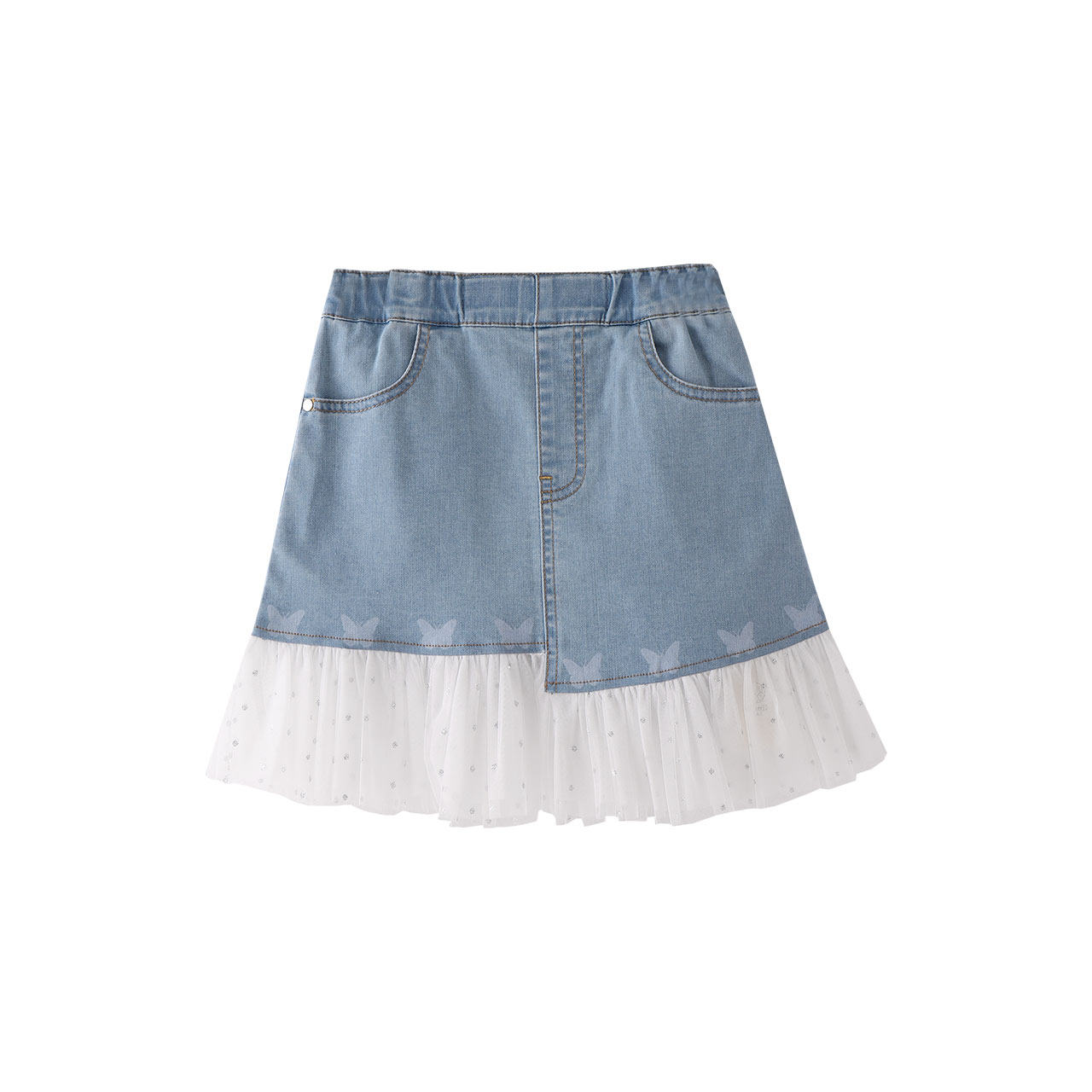 Annil Children's clothing Girls denim skirt 2021 summer new foreign school mesh edge medium large virgin girl short skirt tide
