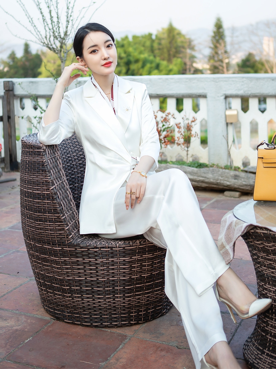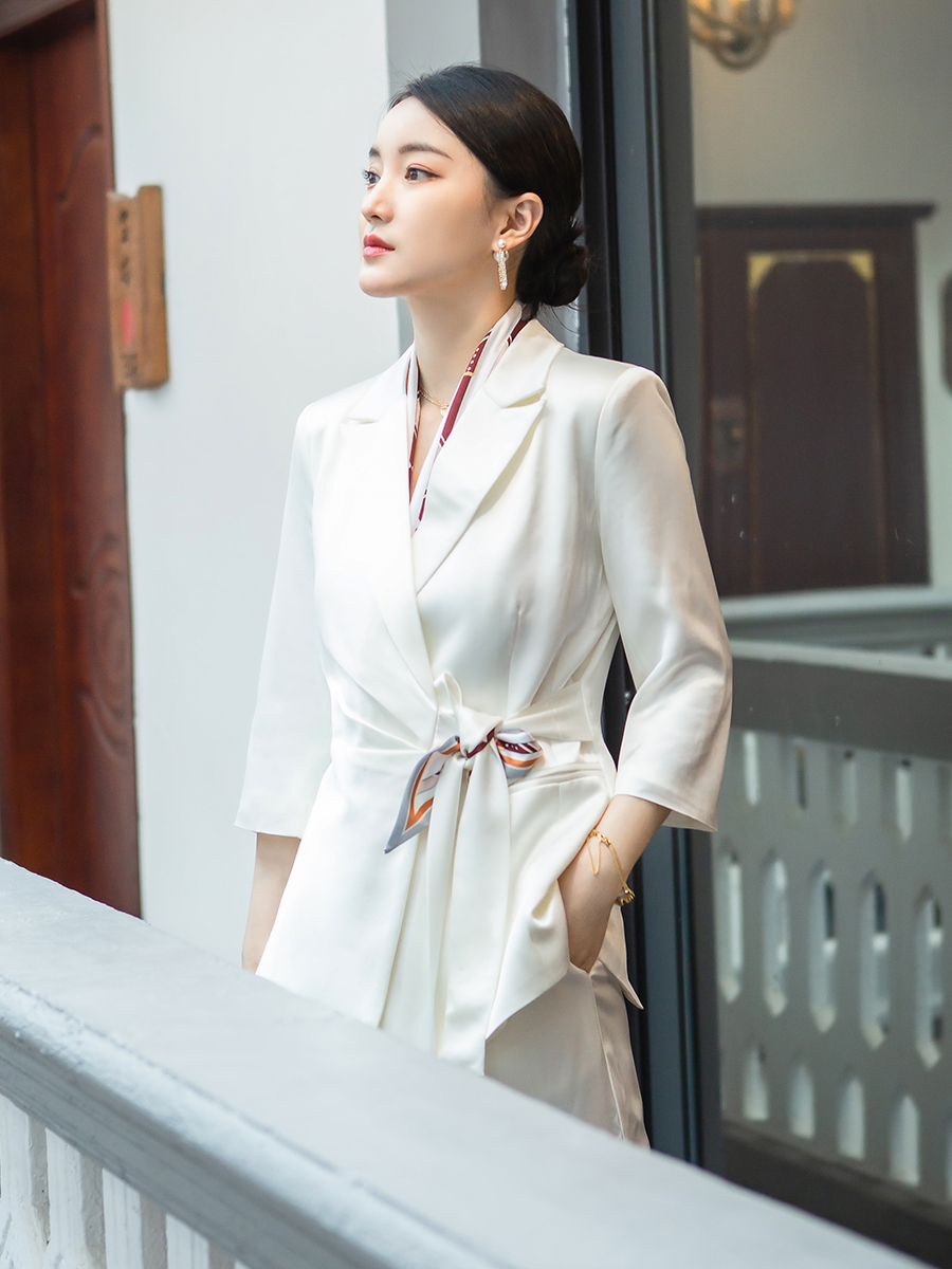 Zhang Nianen's custom-made appearance is the protagonist. Acetic acid suit jacket female autumn thin section white business suit president suit