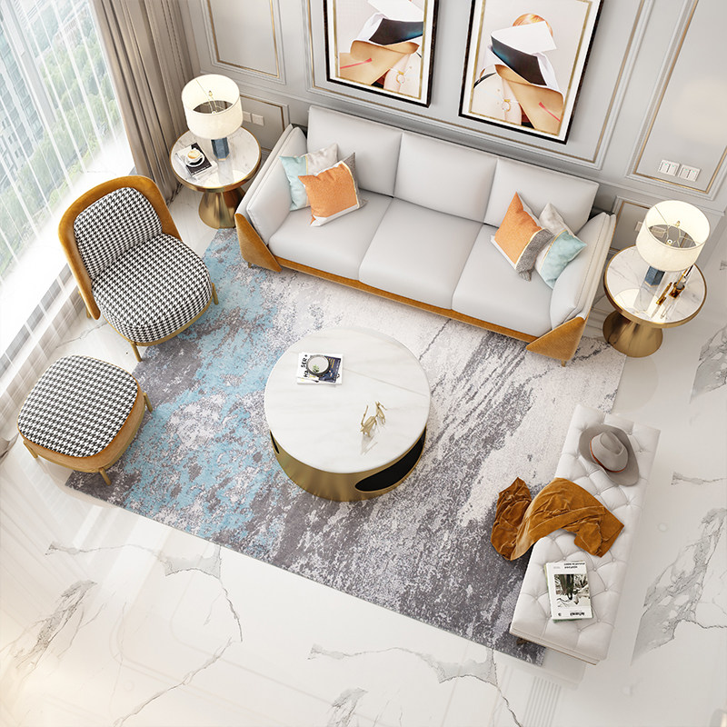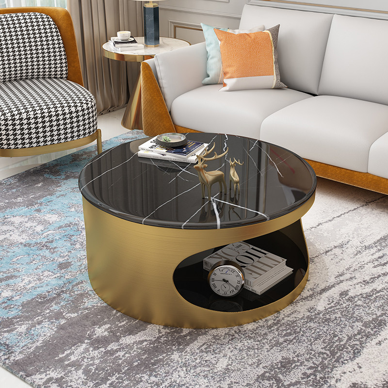 Round marble coffee table Light luxury modern Nordic Round small apartment small coffee table Bedroom double layer can store coffee table