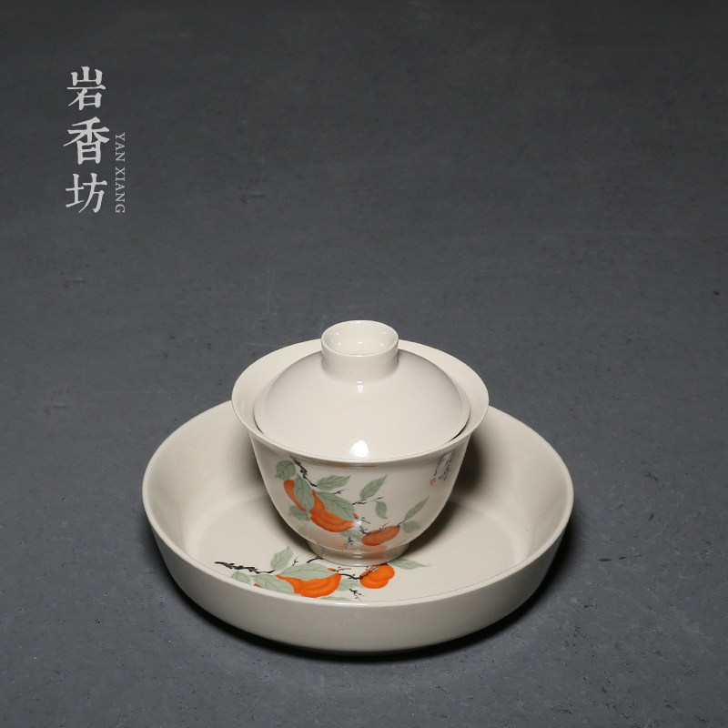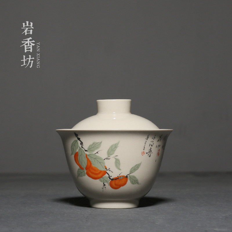 Rock Shangfang, grass - covered cup of kung fu tea cup ceramic tea bowl household three to cover the bowl retro