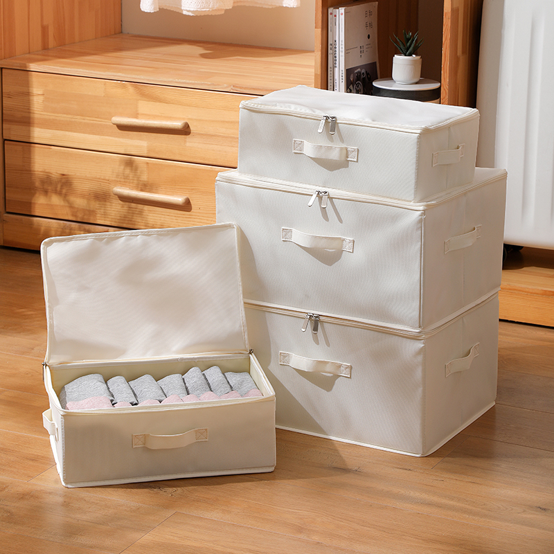 Clothes storage box fabric Oxford cloth foldable washable moisture-proof zipper basket home wardrobe clothing box with cover