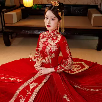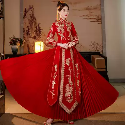 Velvet show 2021 New Bride wedding dress female wedding dress Chinese wedding dress Chinese style show kimono summer