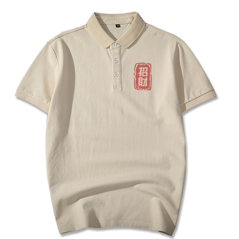 Lapel T-shirt men's short-sleeved tide brand large size men's clothing national tide embryo cloth covered with ancient printing lucky summer men's POLO shirt