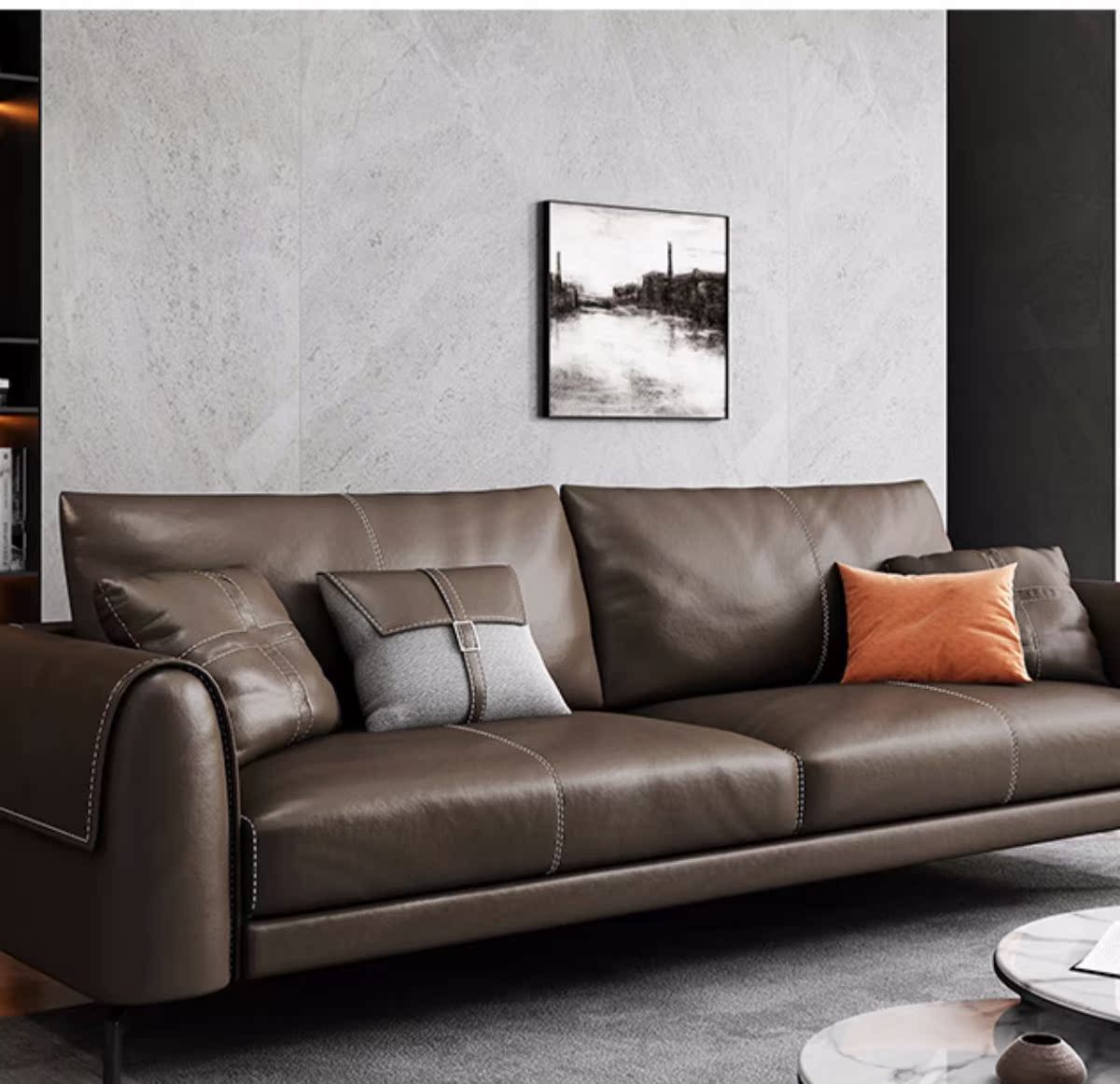 Italian style modern office area sofa coffee table combination genuine leather commercial meeting guest reception simple 3-person latex sofa