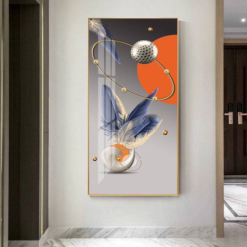 Entrance Xuanguan Family Residence Decoration Painting Vertical Version Living Room Light Luxury Hanging Painting Modern Brief Aisle Solid Crystal Porcelain Inlaid Drilling Wall