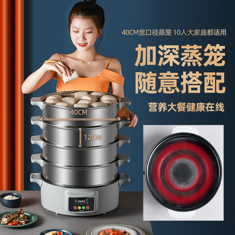 Electric steamer Household large capacity large steam pot Multi-function plug-in electric steamer artifact Commercial multi-layer electric steamer