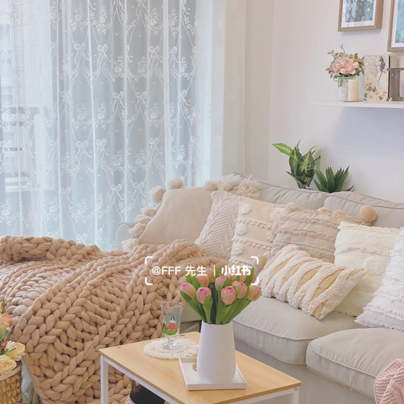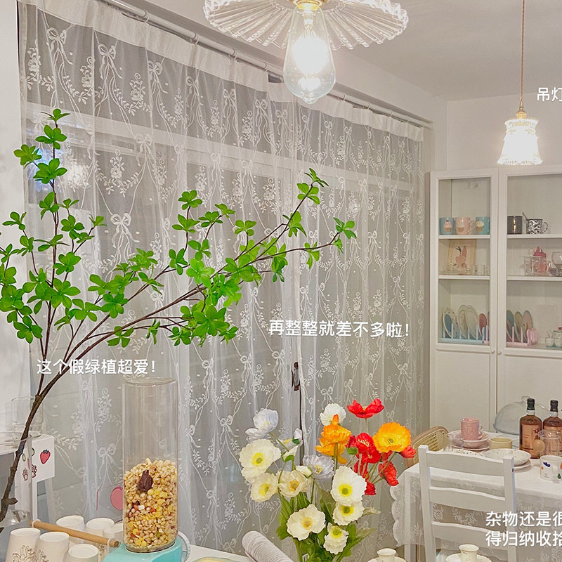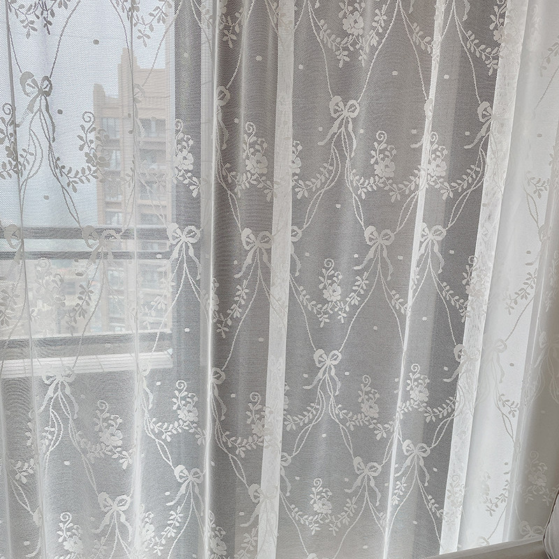 ins Wind romantic bow lace floor curtain European pastoral wind screen curtain curtains can be customized through the rod hook