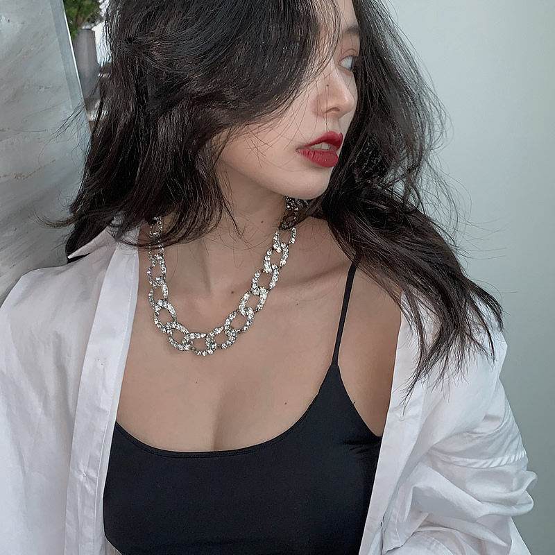GOLICC full diamond inlaid thick necklace Female OT buckle hip hop Cuba chain European and American exaggerated clavicle chain ins necklace