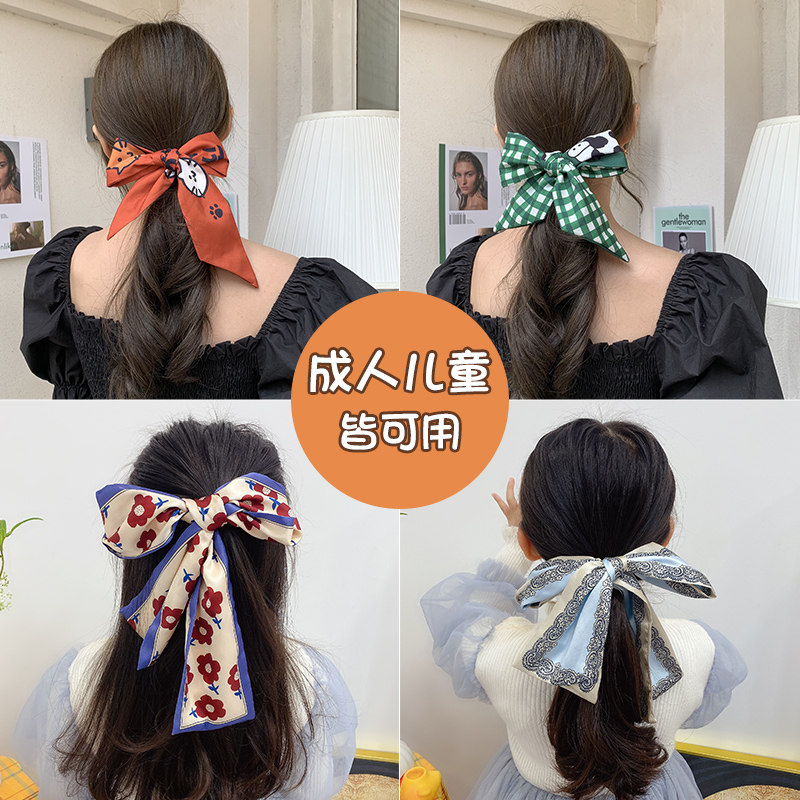 South Korea 100 hitch children's hair with head decoration little girl silk scarf tied hair Butterfly knot choreography girl floating with hair accessories