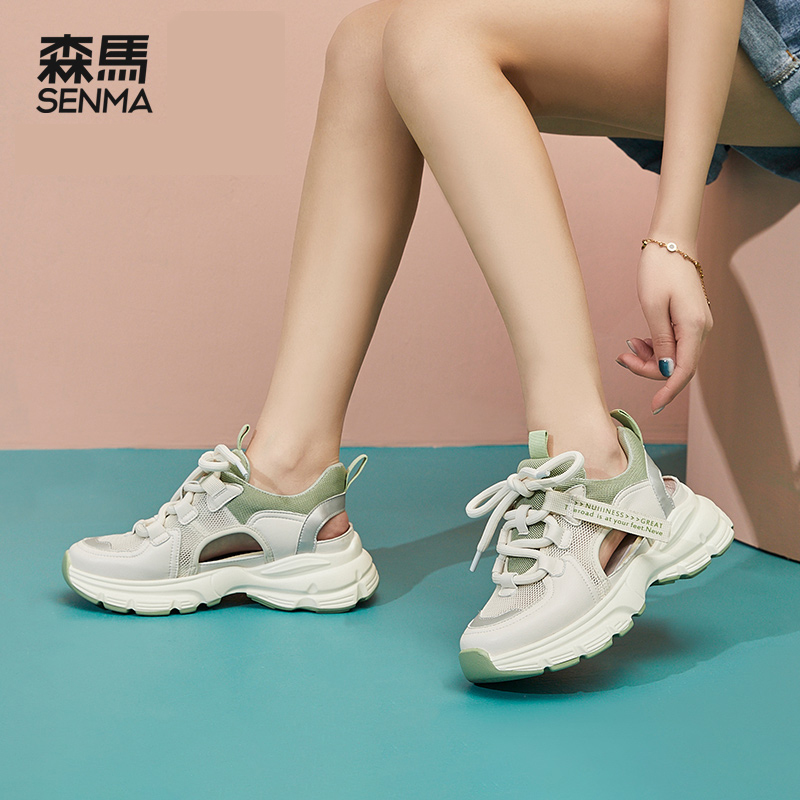 Senma Father Shoes Sandals 2023 new female summer breathable and comfortable soles thick soles and packed sneakers
