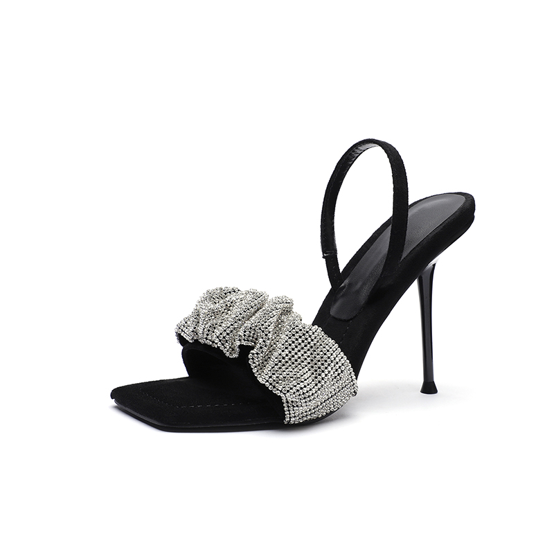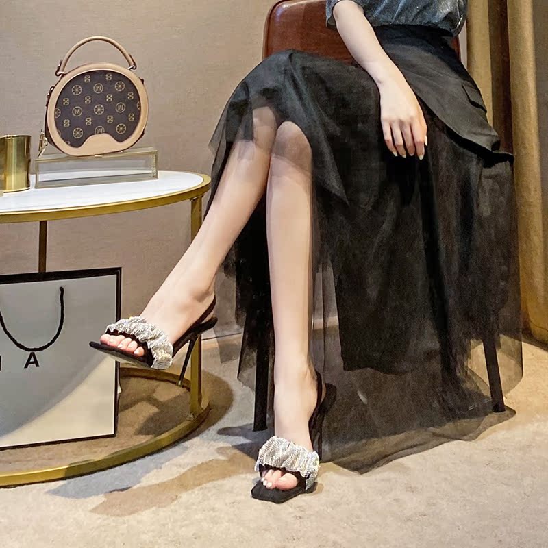 Black high-heeled shoes summer with skirt fairy girl wind season stiletto 2021 new rhinestone dual-purpose wear high-heeled sandals