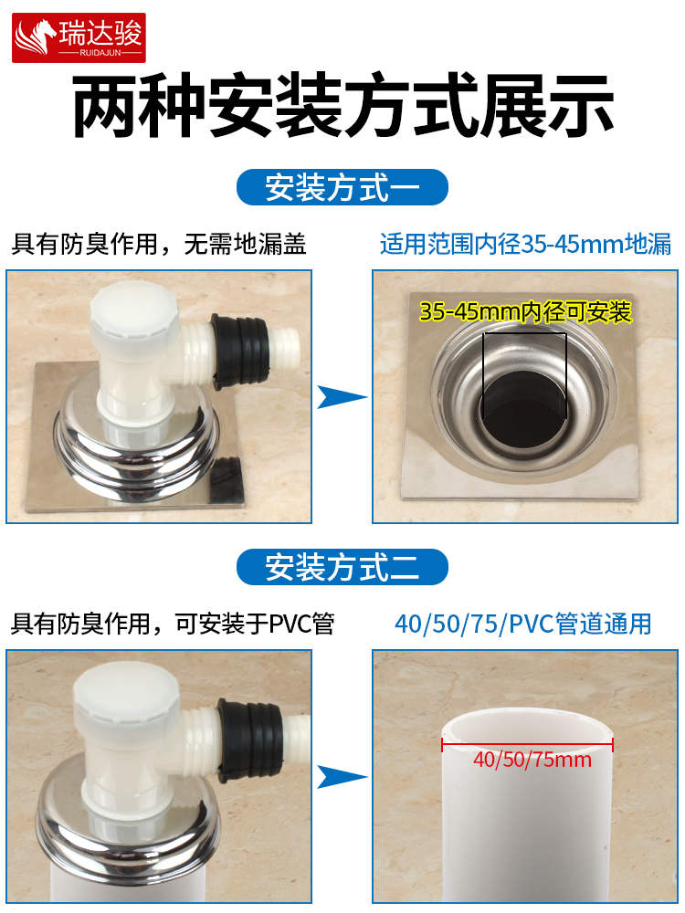 Floor leakage 40 50 75 pvc tube fully sealed anti - smell anti - spill water