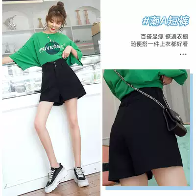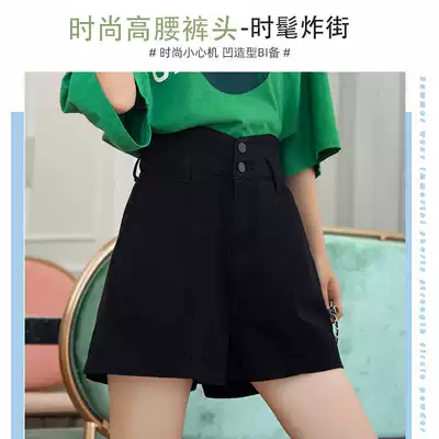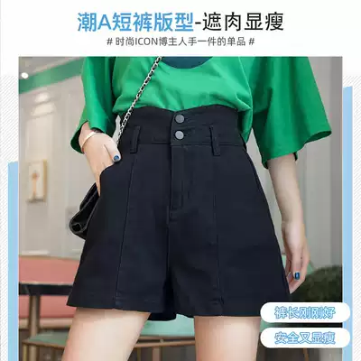 Black denim shorts women's high waist 2021 new summer thin loose slim pants a wide leg hot pants