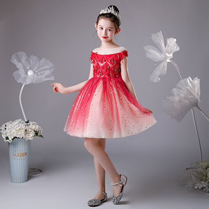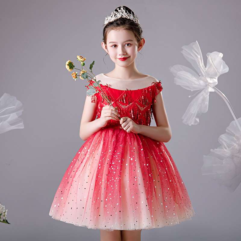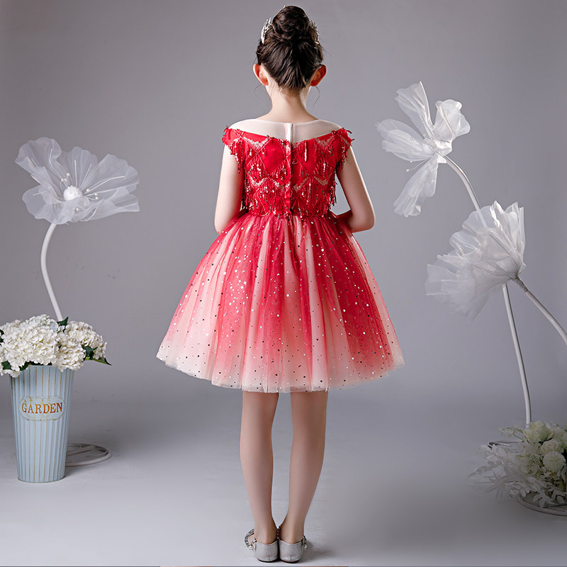 Princess skirt girl super fairy foreign pie fluffy yarn six one children's chorus performance costume small host dress red